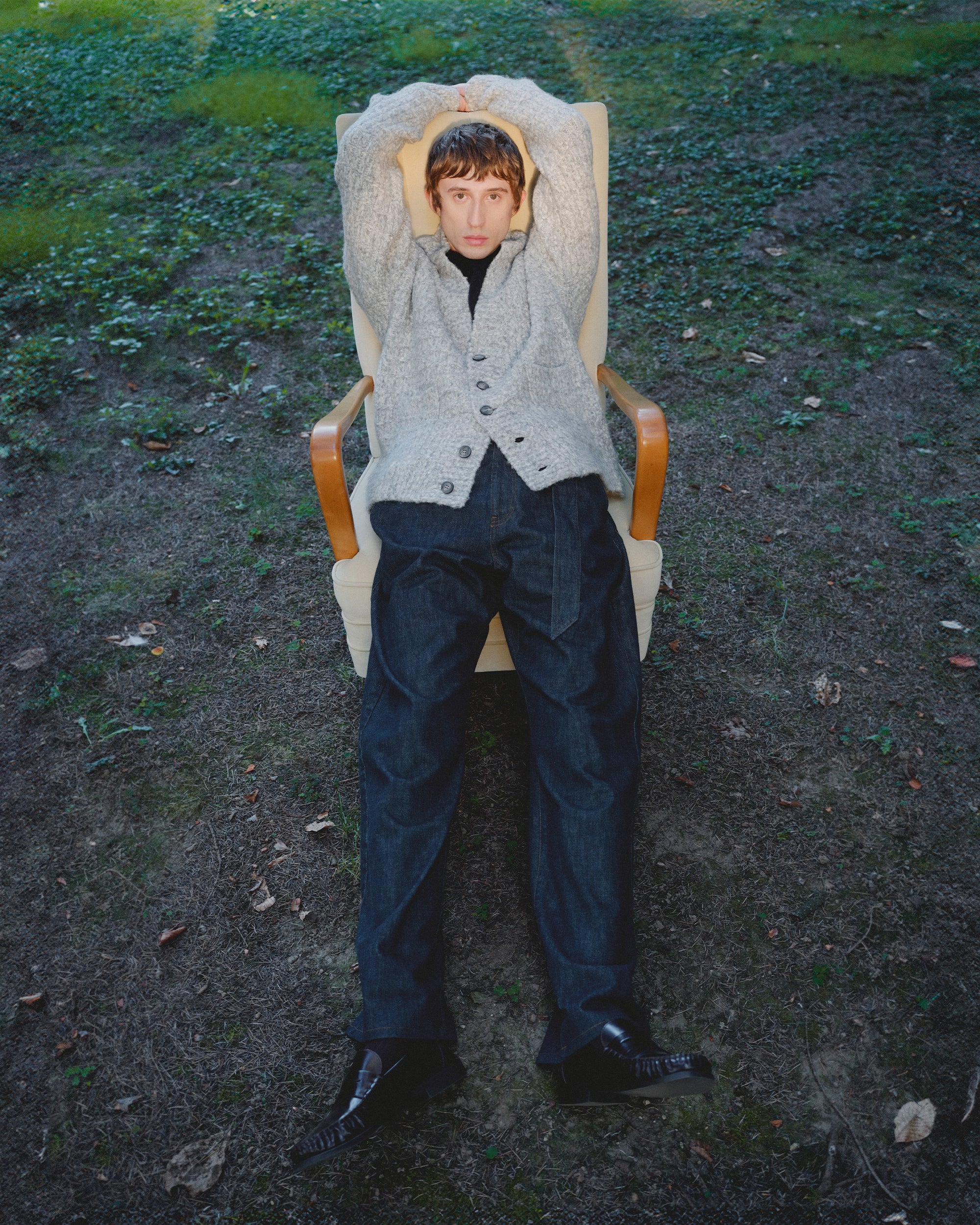 Cardigan garzato in misto alpaca con bordi in contrasto. Blu - Navy